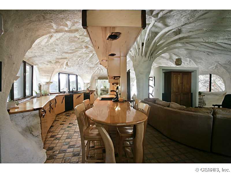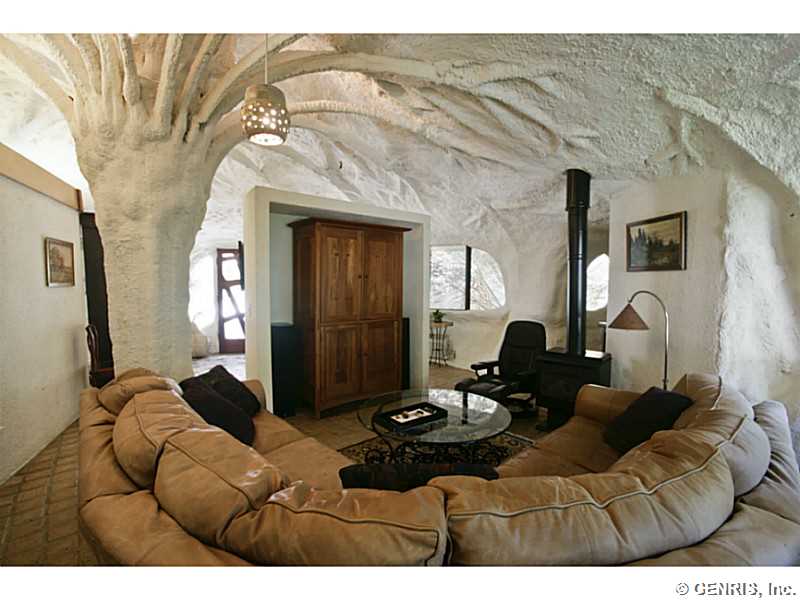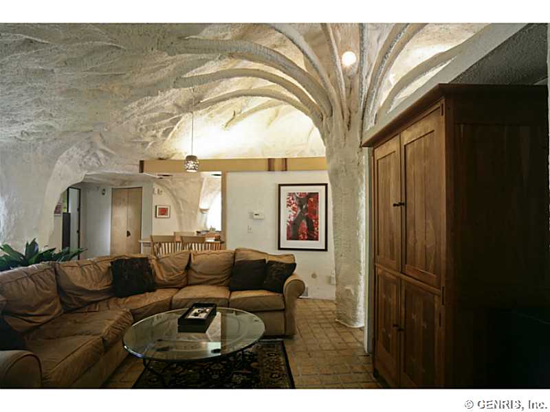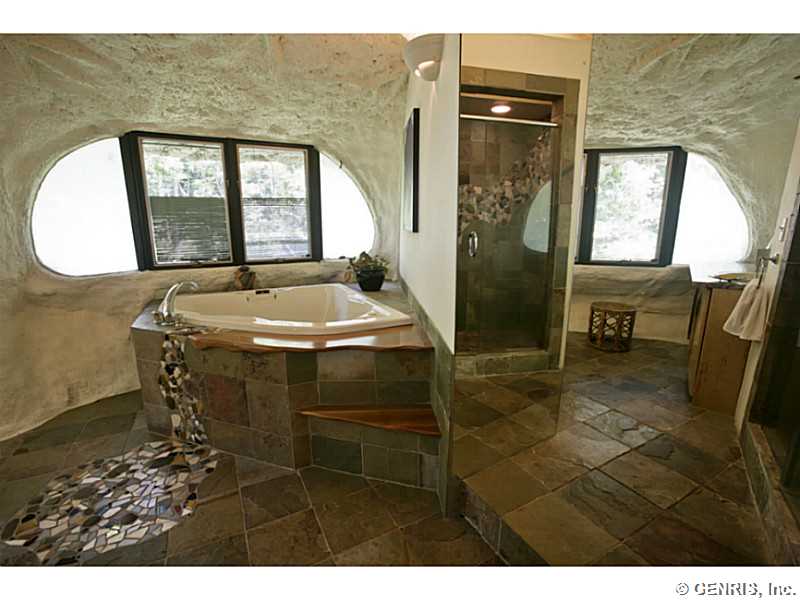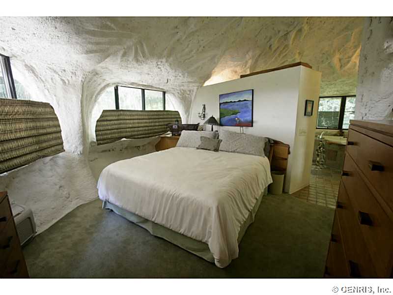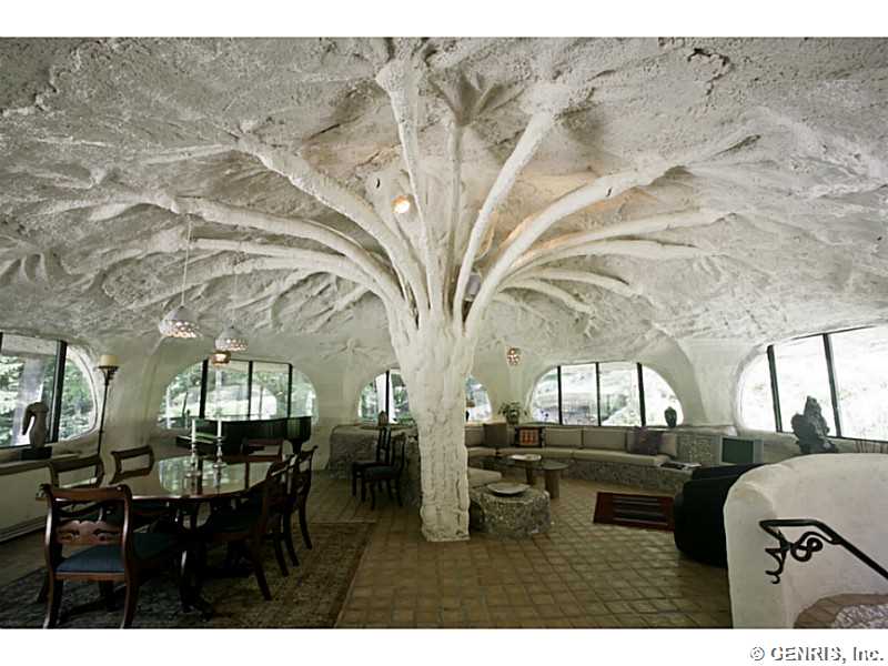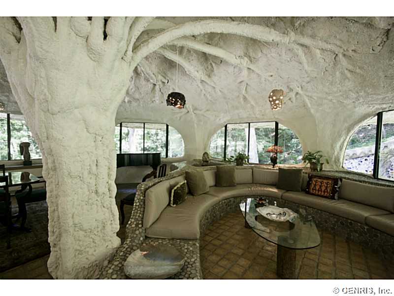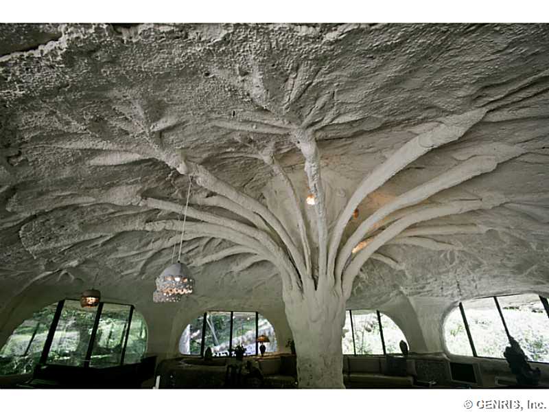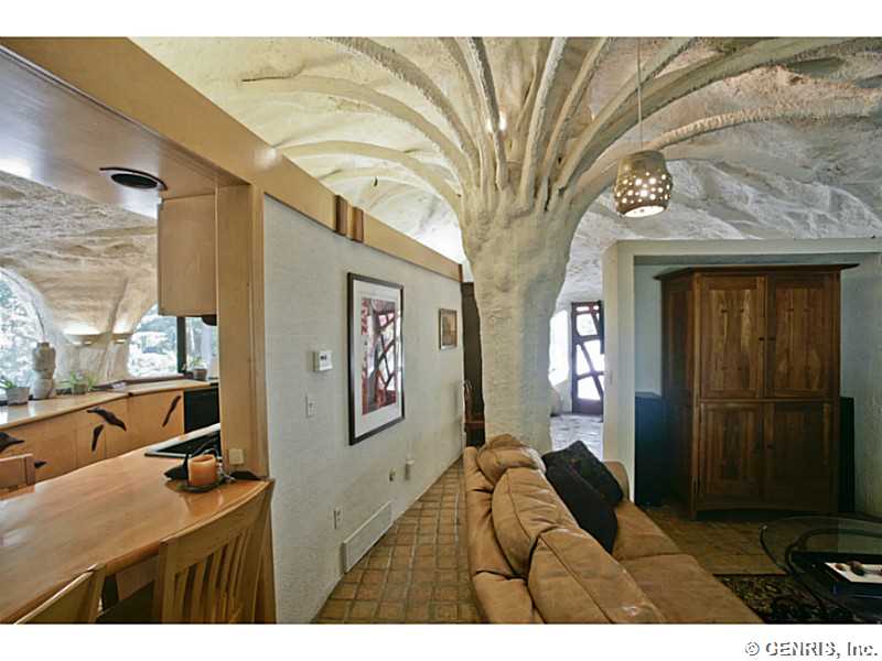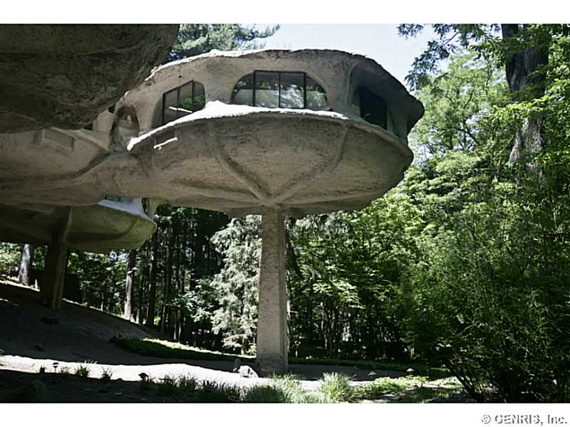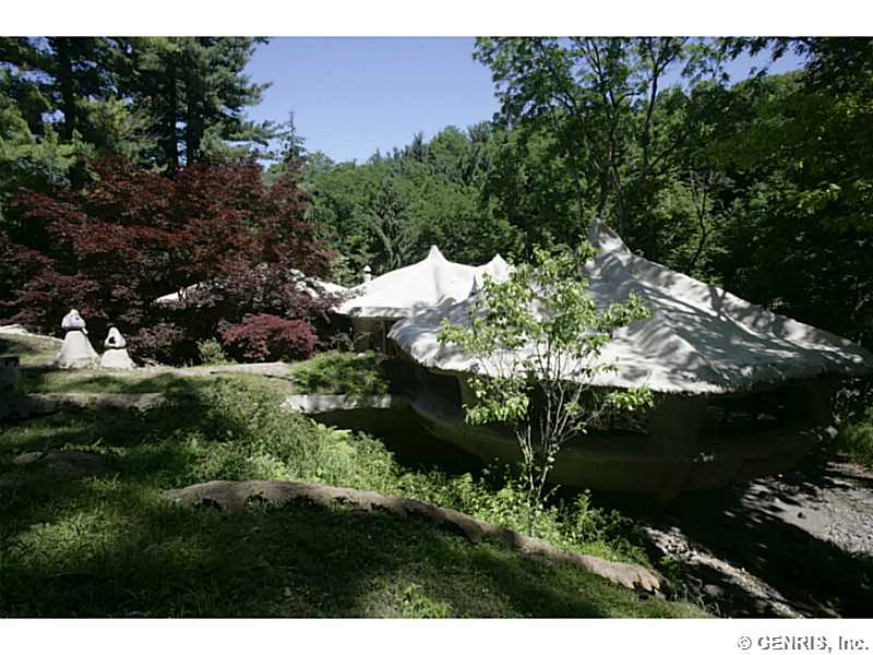 RENTAL - RARE-PREMIER ART ICON home, THE FAMOUS MUSHROOM HOUSE! Referred to as the "Mushroom House", architect James Johnson fashioned this unique dwelling after a stem of Queen Anne's Lace. Distinctive retro-modern "pod" design is Town of Perinton Landmark! 2001 Great Room addition by original architect: 24' ceiling, gas fireplace outside hot tub! Updated baths! MINT CONDITION! Nature is all around you! Adjacent to Powder Mills Park with stream & waterfall! Once in a lifetime opportunity to rent the Mushroom House! This property has been featured all around the world!