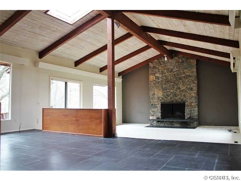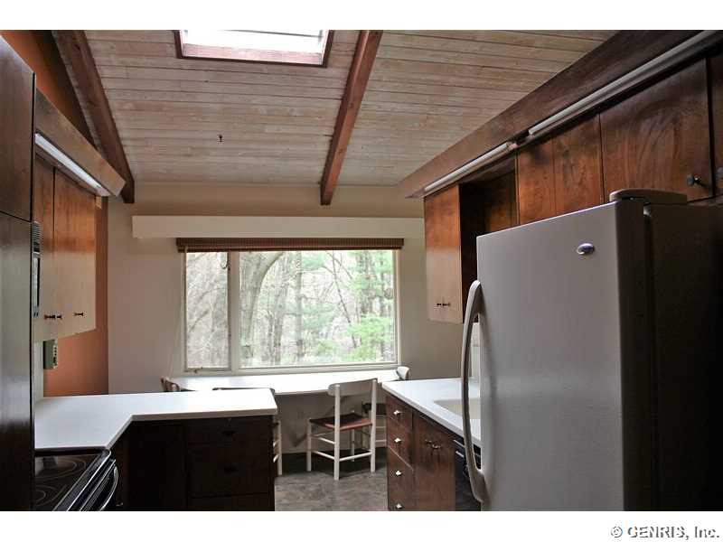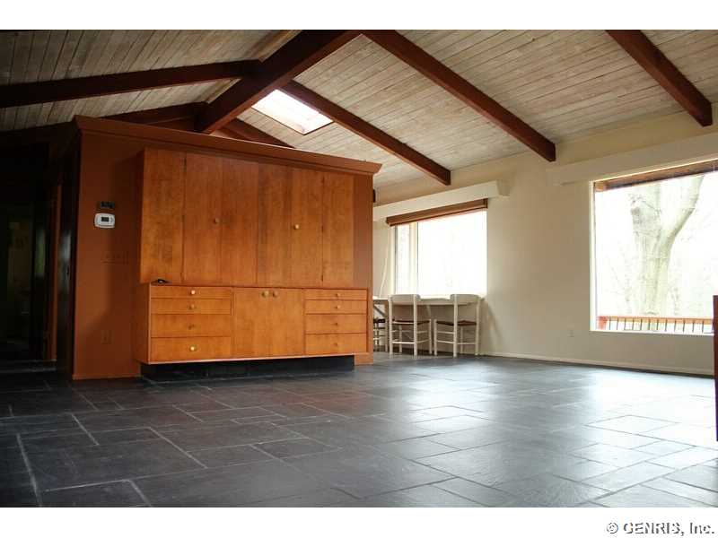 This is a great opportunity to own a one of a kind home in Pittsford! Designed By Renowned Architect Don Hershey, this Spacious Ranch Exhibits a Beautifully Designed Interior, Grand Ceilings, Large Southern-Facing Windows, Skylights, Floor-to-Ceiling Fossil Stone Fireplace, Slate Floors, New Carpet (2016), & GRAND Artist's Workshop, to name just a few! Enjoy the Private Picturesque, Serene Views of the Wooded Lot, on Approx. 6 Acres, From the Expansive Deck! Benefit From the Brand New Furnace with Air Purifier in 2016! This Home is a True Work of Art! Enjoy Views of the Wooded Lot & Lily Pond!