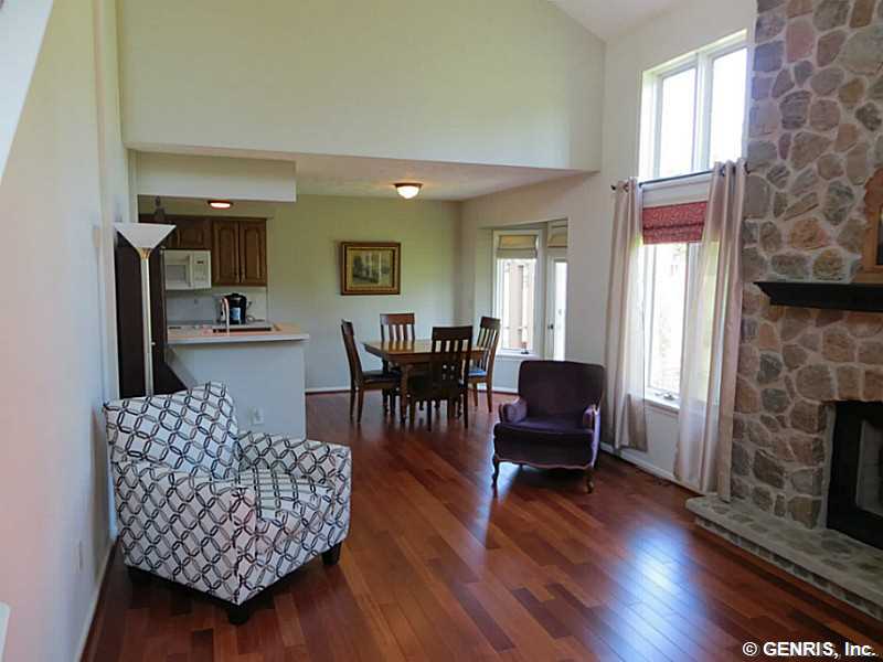 Magnificent condo, exquisite location, across from guest parking and adjacent to green space. Striking red oak hardwood floors throughout main level. Floor to ceiling wood burning granite fireplace, updated kitchen with corian countertops, first floor laundry, new ceramic tile powder room, 2 car attached garage w/ hot water. new water heater, new furnace and heat pump, master suit includes walk in closet & addition closet, shower/bath. This is turn key move in ready condition.