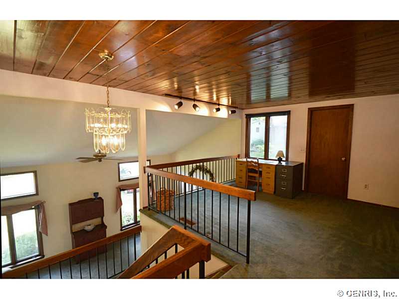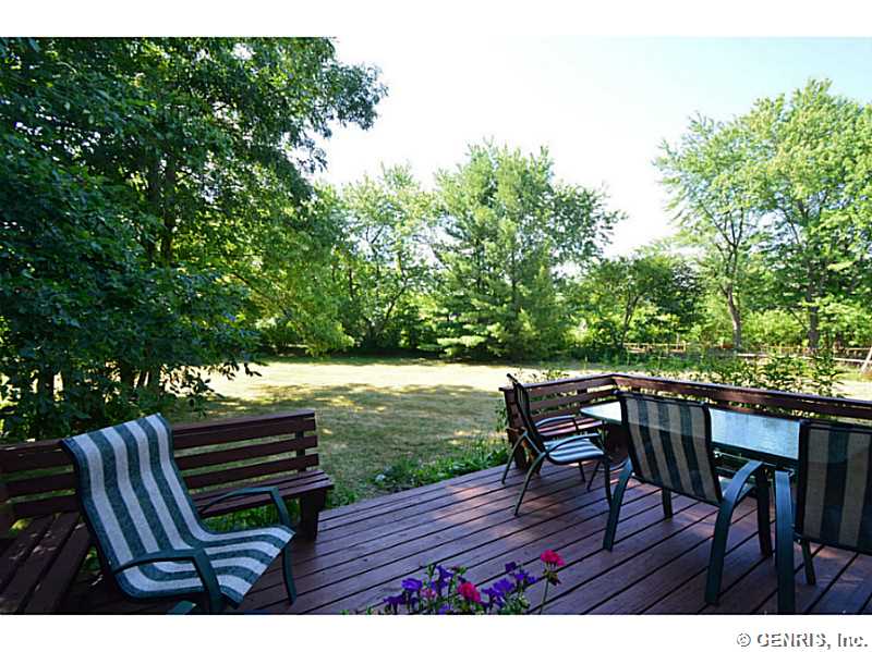 Wonderful location in great neighborhood just outside of Fairport Village. The property is just over .5 acres, with a sliding glass door to a deck leading to a private, entirely fenced in backyard sanctuary. Open floor plan, great for entertaining. Bonus loft space between bedrooms upstairs. First floor laundry. Complete tear off roof June 2016. ALL Fairport Electric. Must see !!!