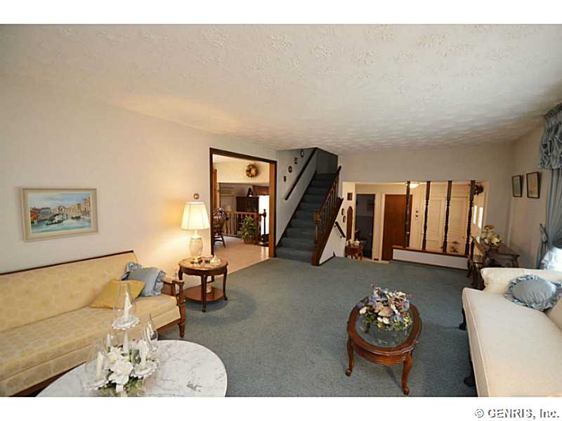 Sparkling well cared for and maintained split level, 3/4 bedroom, sprawling oak kitchen with solid surface, , lower level family room with gas fireplace, large living room, den, 1st floor laundry, finished rec room in basement, hardwood floors, enclosed rear porch, 2 car attached garage, shed, beautiful lot. Quick possession available (Seller to only provide permits currently on file at the town of Greece)
