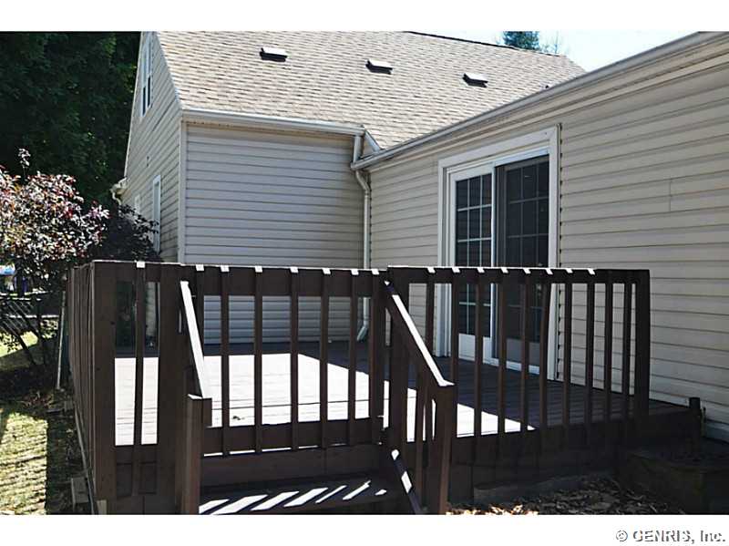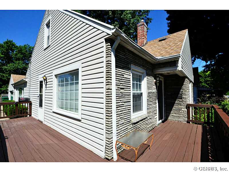 Cute & cozy Cape with room to roam. Modern kitchen & bath, 20 X 20 family room with sliding door to deck, kitchen with snack bar, 2 bedrooms down 1 up, deck in front & rear, 2 car garage, fenced rear yard, vinyl siding, some vinyl replacement windows. (sq' per Town Record) seller to only provide permits currently on file at the Town Of Greece