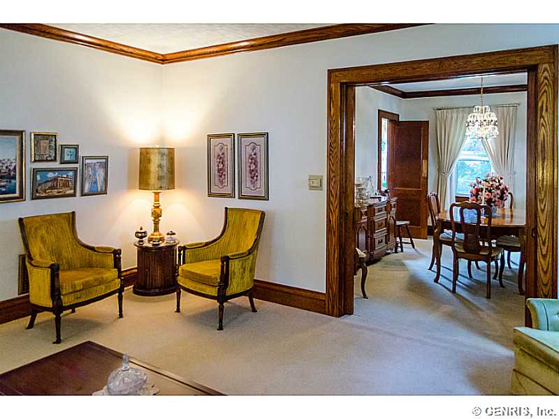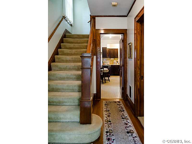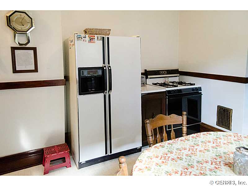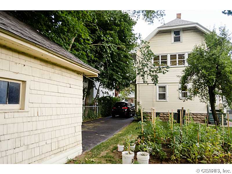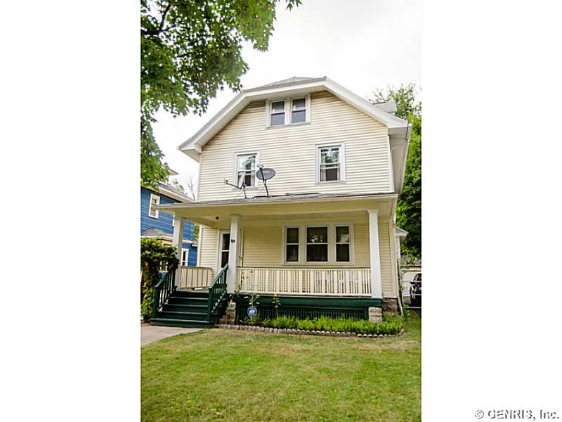 Charming 19th Ward home with lots of potential! This 3 bedroom, 1 bath house has original gumwood trim throughout, a large eat-in kitchen, and sleeping porch upstairs. Beautiful gas fireplace, large windows, and carpeting throughout. Attic space offers potential to expand. Large yard is fully fenced-in with detached garage. Great location near Strong Hospital, shopping, and expressway.