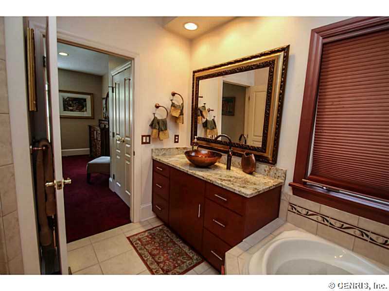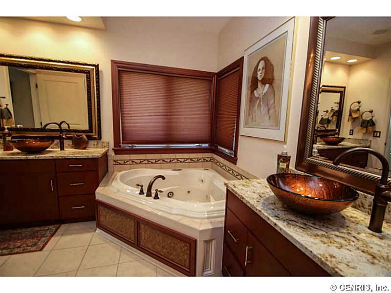 This stunning transitional home has so much to offer. Situated on cul de sac with privacy and wooded backdrop. Two story marble foyer, sun drenched 2 story living rm, formal dining. Palladium windows. Chefs, eat in granite kitchen. Built in, breakfast bar, hdwd flrs. huge walk in pantry. Comfortable den with built in wall unit, 2 master suites on 1st flr. Lux bath with steam shower, jacuzzi. Guest suite up, office, full bath. Professionally finished walk out lower with additional 1400 sf. Fam rm, Bedrm, full bath, gym, Exquisite deck, patio, 3 car garage. Perfection! MUST SEE! EASY SHOW.