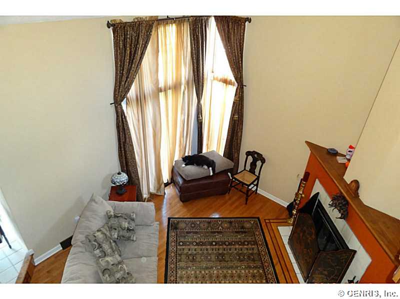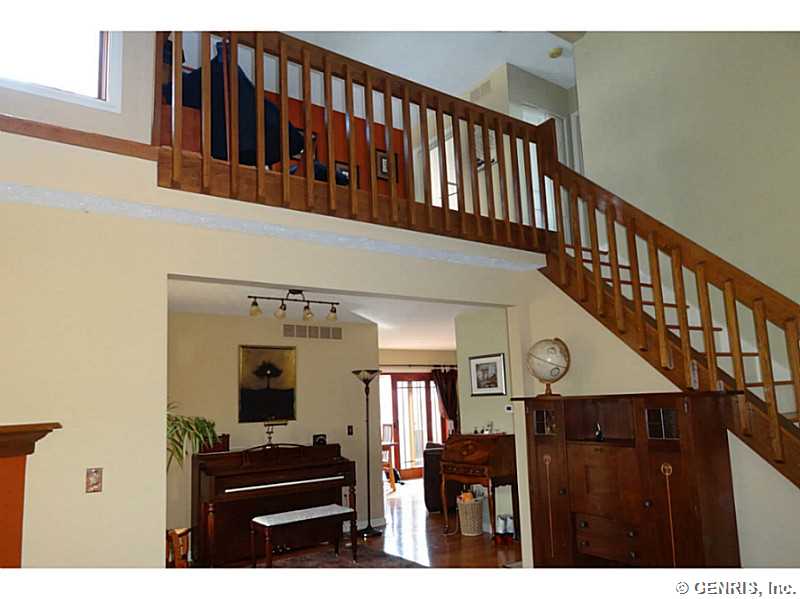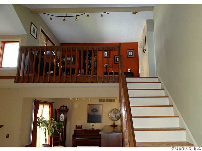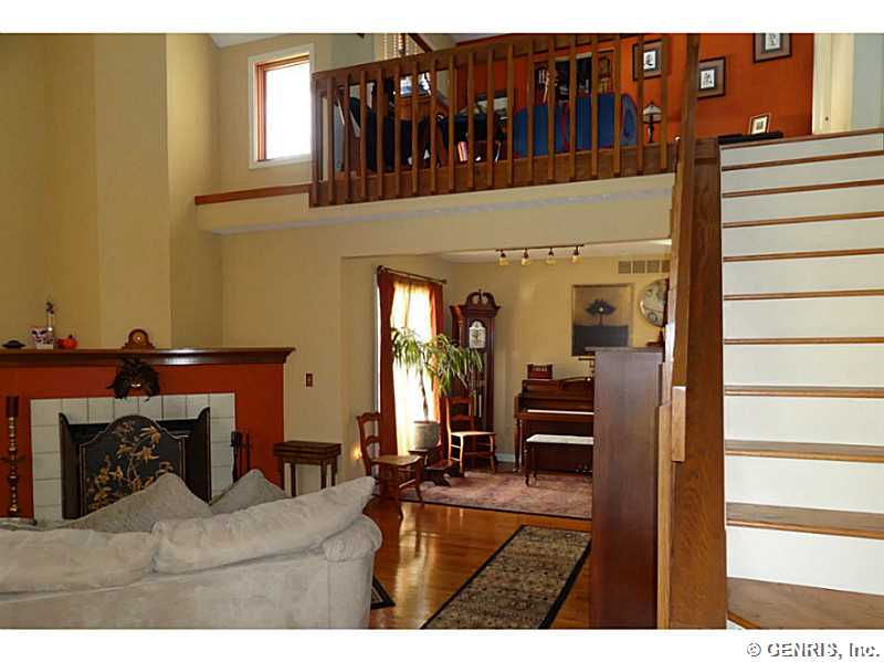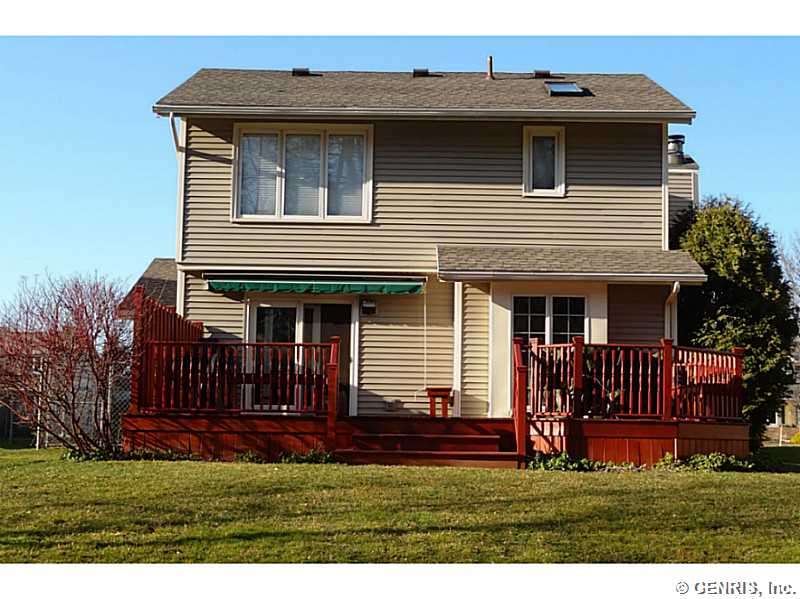 Located on a quiet cul-de-sac just north of the village of Fairport, this immaculate home contains open living space with a loft overlooking the sunken living room and working fire place. Recent updates include new hardwood floors, carpets, windows, appliances, a partially-finished basement and a deck which backs up to a forever wild area. Fairport schools are one of the best & Fairport Electric keeps utilities low. Enjoy the privacy of the woods while being close to shopping and restaurants. The neighbors are friendly, lovely people. There is a dog run off the garage for your favorite pooch.