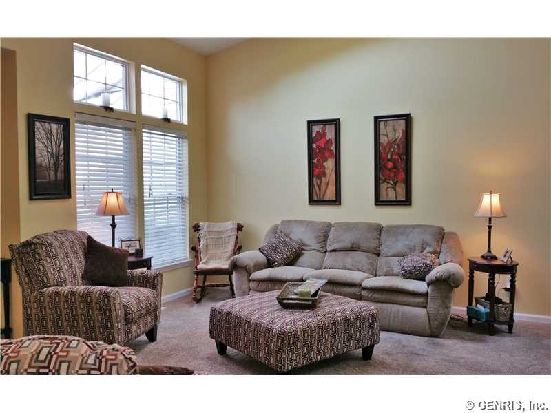 FANTASTIC! Warm & Inviting. Open & Bright Floor Plan. Spacious Living room offers soaring ceilings & skylight and Opens to the Dining area w/ additional skylight and room for the largest gatherings. The updated kitchen has granite counters,includes appliances, newer cabinets & floors. Easy access to the patio. Master has a private full bath, walk in closet & additional closet, There is a 2nd full bath & bedroom & 1st floor laundry too! Central Air brand new! Hot water 1 yr. Private back yard back to woods. Sit on the patio and say good morning to the deer! A WONDERFUL PLACE TO MAKE MEMORIES!