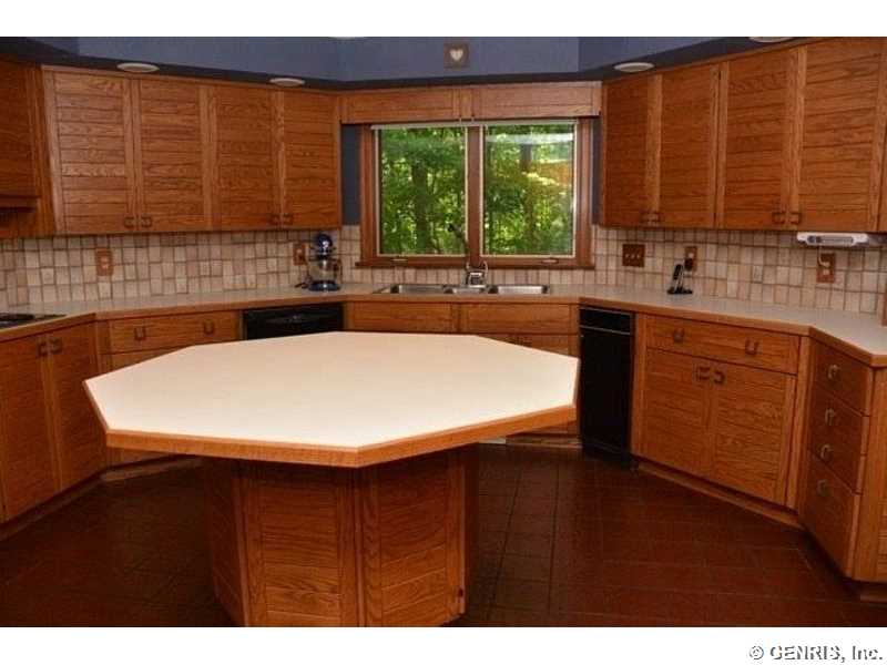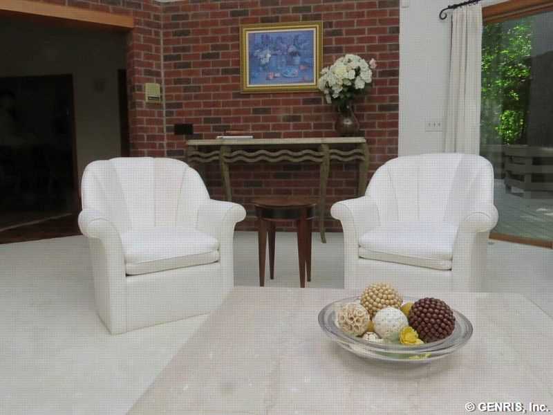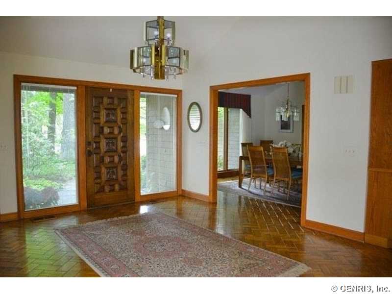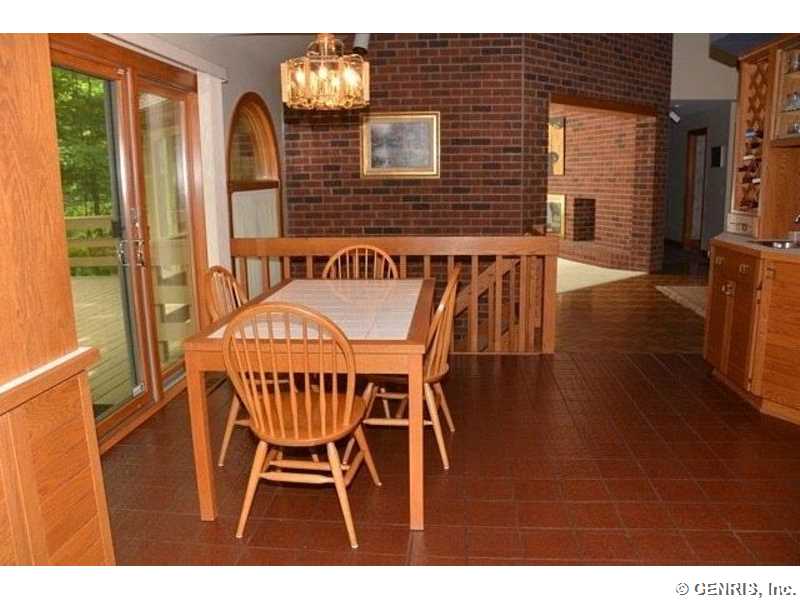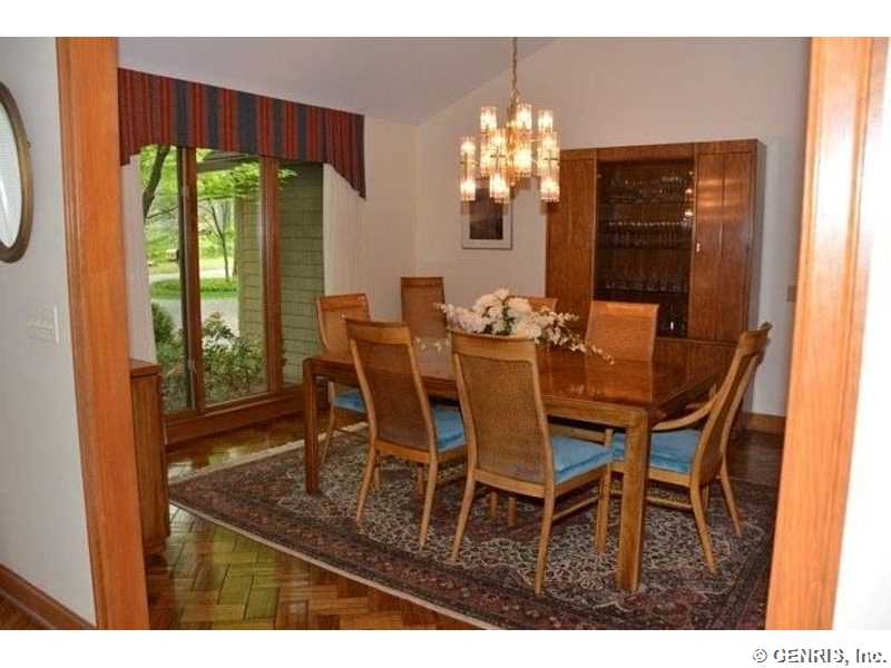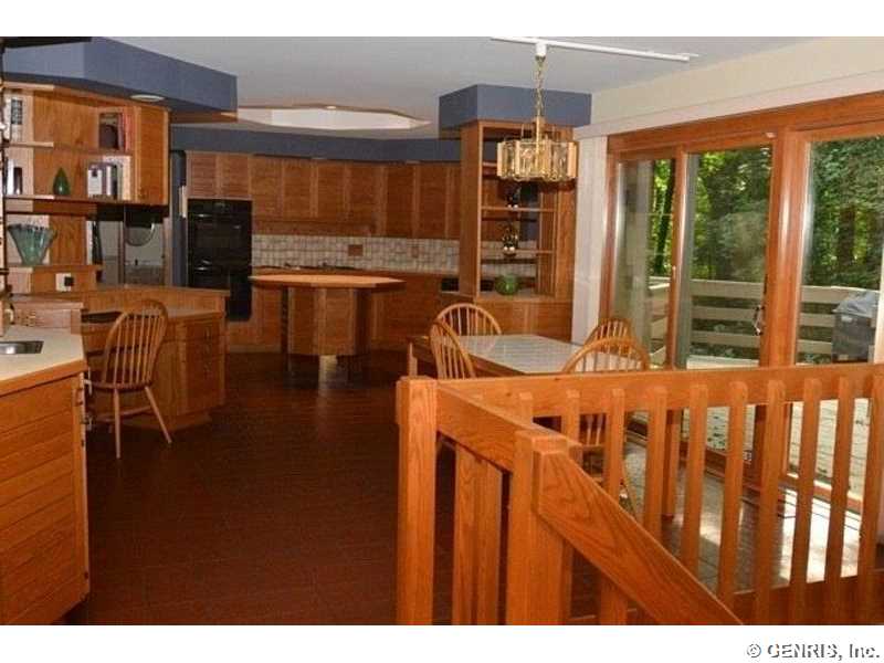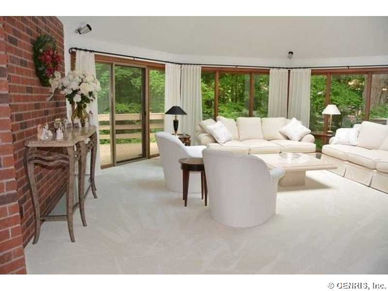 This unique home's architect is James Johnson, the architect for the Mushroom House in Perinton. A private road brings you to this cedar and stone ranch that has an additional 2488 sq ft on the terrace level (home total of 4278 sq ft), including a family room and 4 bedrooms. Tear off roof in 2010, 2 gas furnaces and air conditioner replaced in 2000. Updated kitchen appliances, 2013 home security system, and floor to ceiling windows! A 1st floor master bedroom with a private deck to enjoy the solitude. Living room has an octagonal skylight updated in 2014 and the kitchen is a cook's dream!