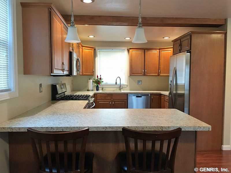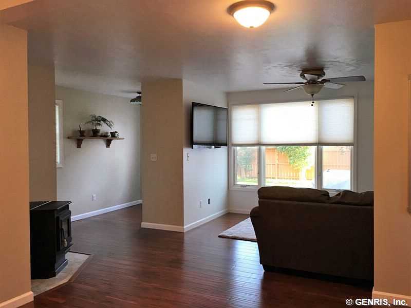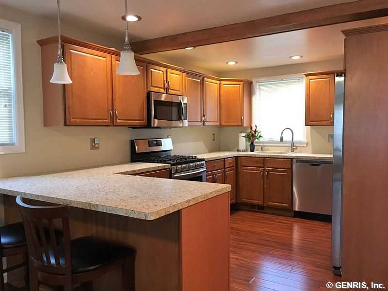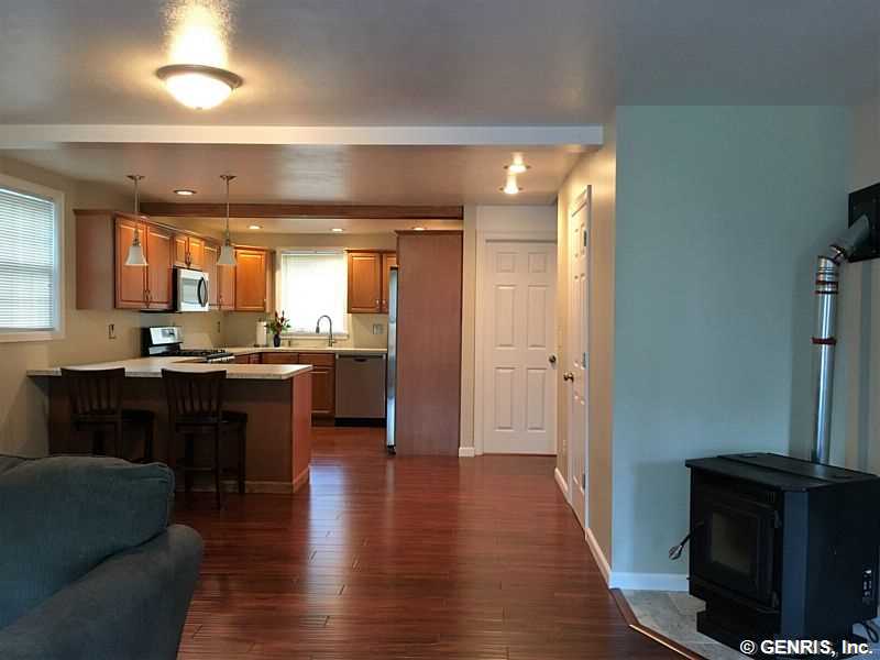 Just Like New! This home has new Walls,Insulation,Kitchen,Bathrooms,Flooring,Pellet Stove,Windows,Siding and Roof! Nice open floor plan on lower level! Updated Maple Kitchen with Breakfast Bar! Cozy Living Room with Pellet Stove exiting to Rear Yard and Patio!Spacious Master on upper level with Private Master Bath and Loads of Closet Space! Ideal Garage with Second Level that could be added Living Space! Well Landscaped Yard! An Added Bonus is Durand Eastman Park is just a short walk down the street with Access to Hiking Trails! Mint Condition Inside and Out!