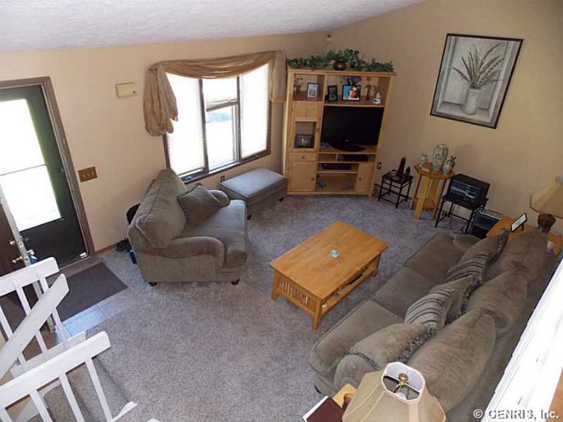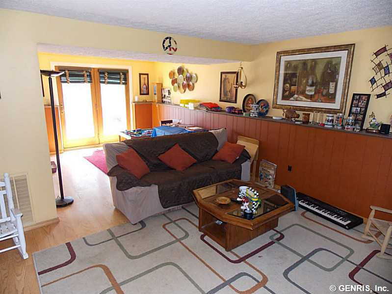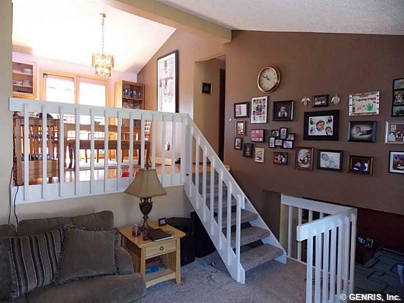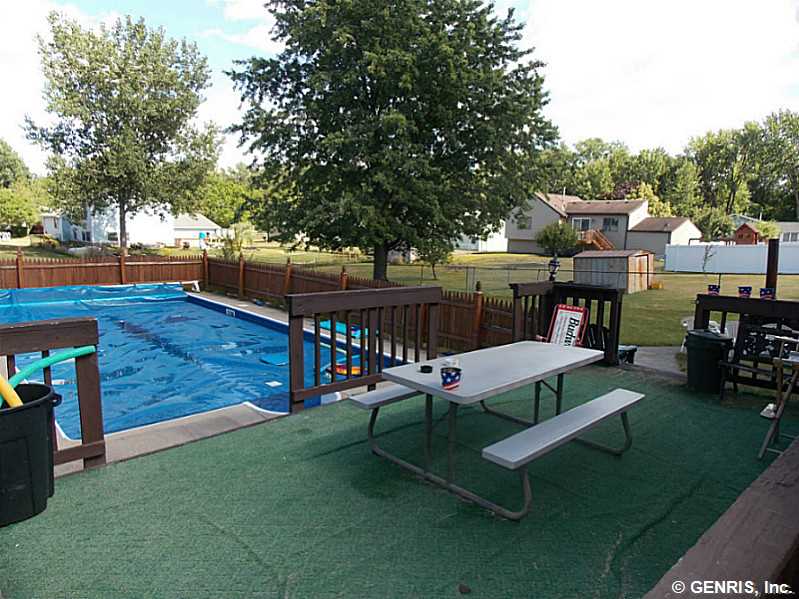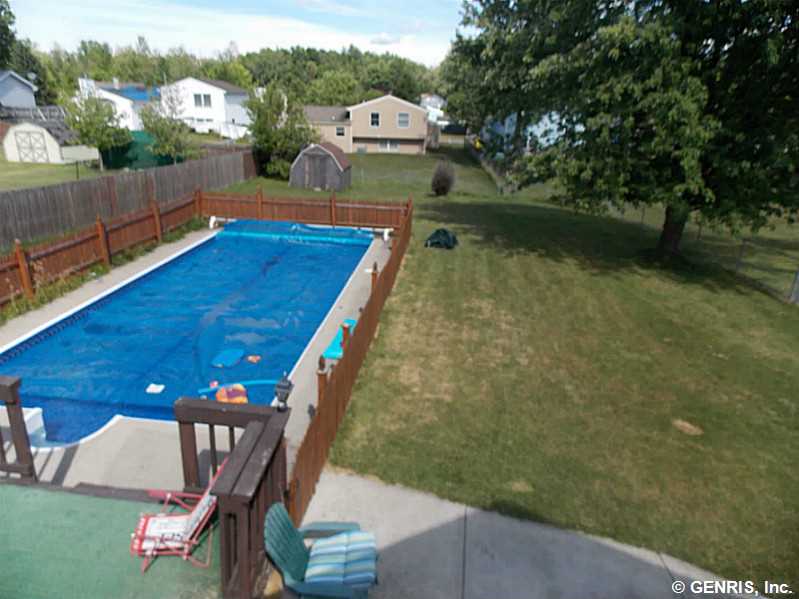 Spacious Split level with 3 FULL updated bathrooms. Beautiful large eat in kitchen with ceramic backsplash and sliders to the upper deckm huge finished lower level with full bath, wood burning fireplace and french doors out to the back patio. The yard is AWESOME!! Fully fenced, large, 2 decks, a patio, and an in ground pool with a brand new liner being installed. *Spencerport schools* Master bath, central air, new carpet, and attached garage!